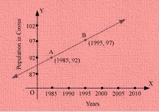Q-14. Take the records of the population and year graph given below. What will be the slope of the line XY? By using this, find the population in the year 2005.