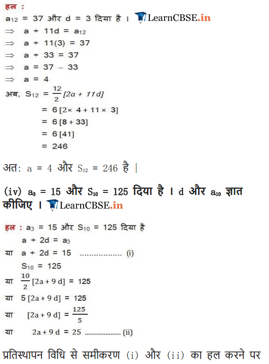 (iv) given a3 = -15, S10 = 125, find d and a10.